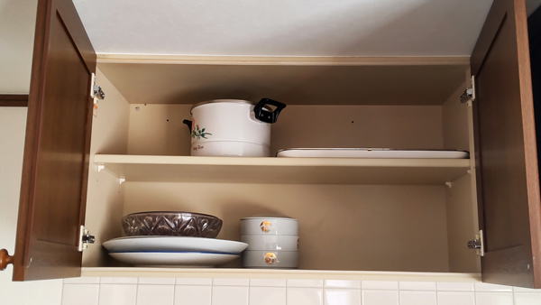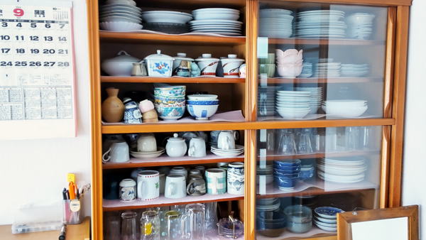 次に手を付けるべき場所です。食器棚にはとにかく食器類が一杯。