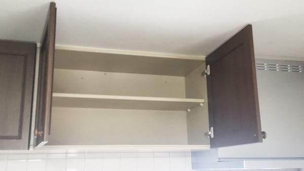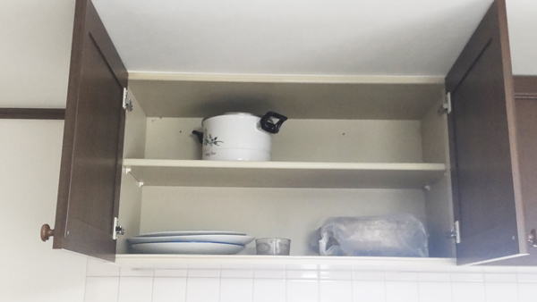 一番上と、二番目の画像は、キッチン上の収納棚の状況です。ほぼ空の状態になりました。