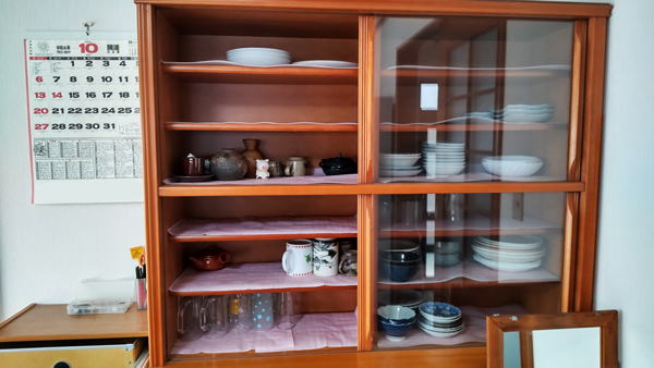 食器棚に少々ホコリが溜まっているので、食器の並べなおしのついでに掃除をしようと思います。