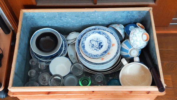 木箱やお盆にいっぱいになっていた食器類、ガラス類、金属品が一気になくなりました。
