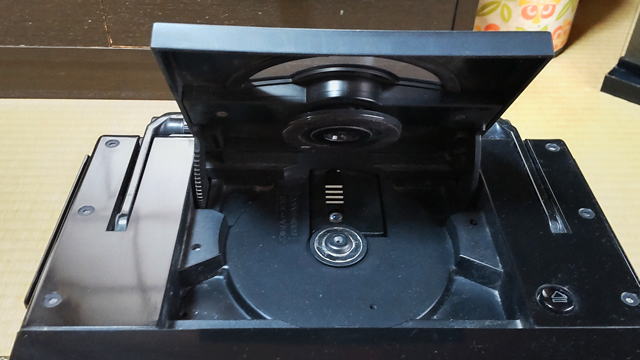 CDプレーヤー部分です。細かくて見ずらいですが8センチCD対応の小さなセンサー穴があります。