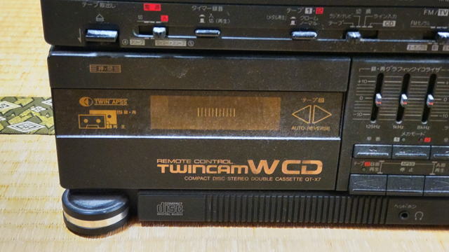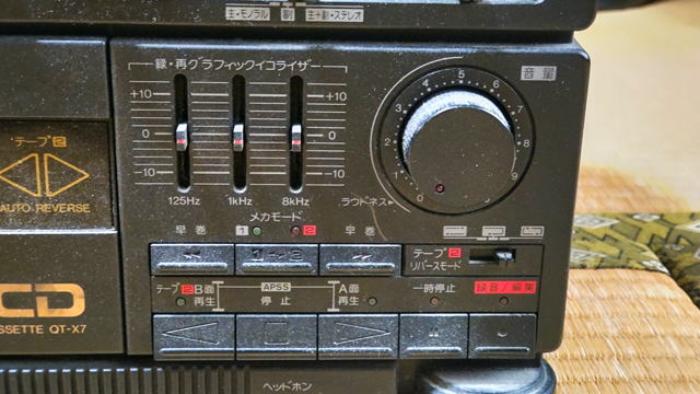 画像では見えませんが、ヘッド部分はオートリバース仕様です。Wカセットでオートリバースなので2本のカセットA/B両面を