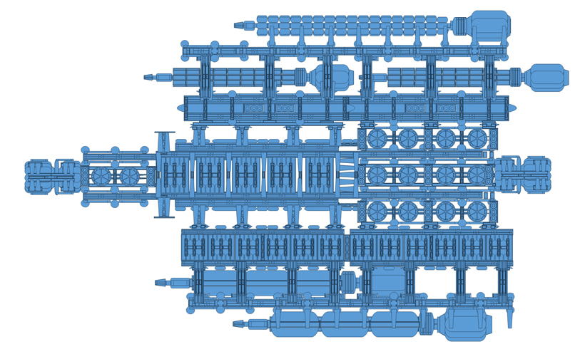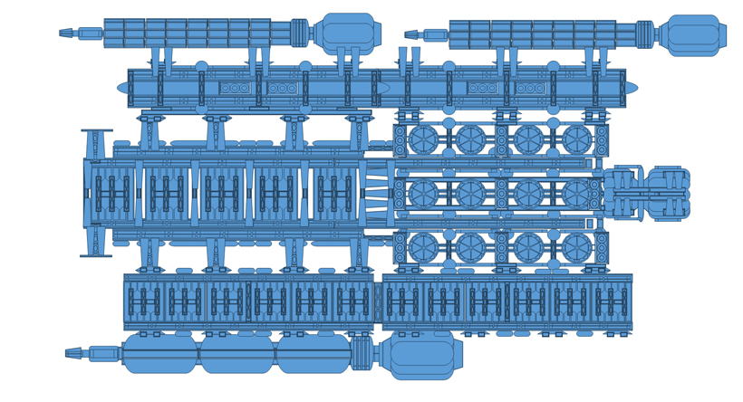 ●作業プラットフォームA、B、C (旅客/貨物兼用ブラットフォーム) <構成> ・中核ブロック ・増設核融合炉モジュール ・物流用ブロック×2 ・旅客用ブロック×2 ・増設桟橋×2 <最大取り扱い船舶> ・貨物船2隻 ・タンカー1隻 ・旅客船2隻 同時接岸可能 <詳細スペック> 作業プラットフォームA、B、C ※別窓で開きます |