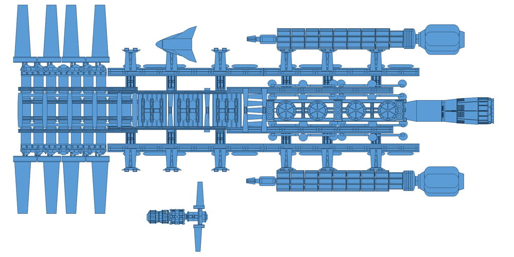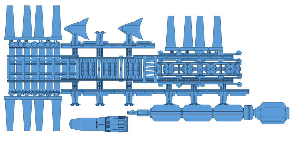 地球の衛星軌道上には、中継点となる作業プラットフォームが配置されています。