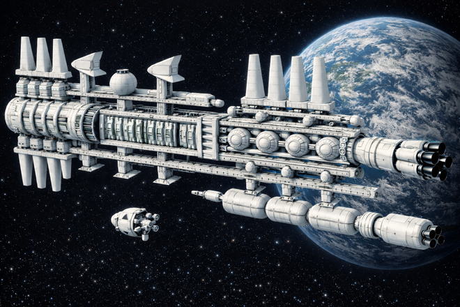地球周回軌道作業プラットフォームの想像図をChatGPTで作成してみました。
