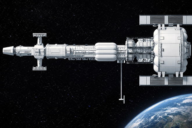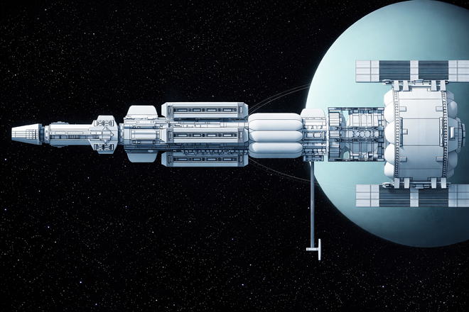 <改装箇所とフィールドテスト項目> ●管理モジュール ・制御システムの更改、機能/性能確認 ●居住モジュール ・居住設備の更改、機能/性能確認 ●動力制御、生産モジュール ・設備の更改、機能/性能確認 ●動力モジュール ・核融合炉の更改、機能/性能確認 ●推進モジュール ・クラスター推進システム(単体モジュール)への更改 ・ラジエーターパネルの取付位置変更 ・大気ブレーキシールドの撤去 ・各機器の機能/性能確認 |