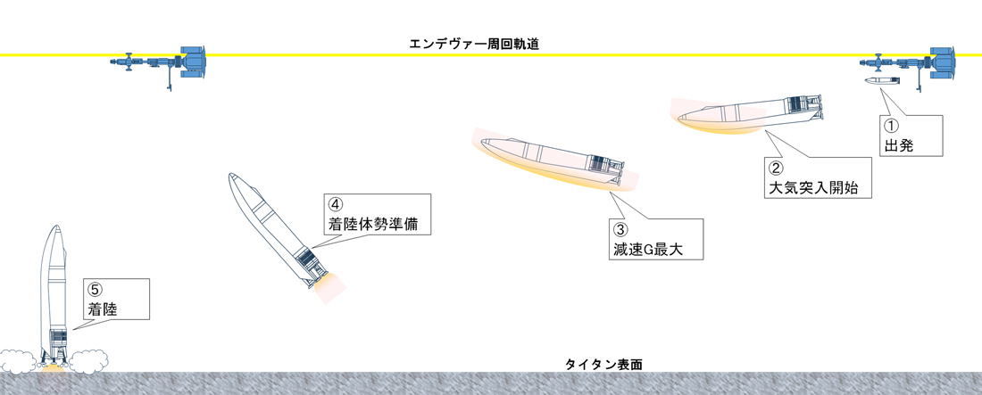 「エンデヴァー」からタイタンに向かう場合には、着陸船はグライダーのように滑空しながら大気に突入し、