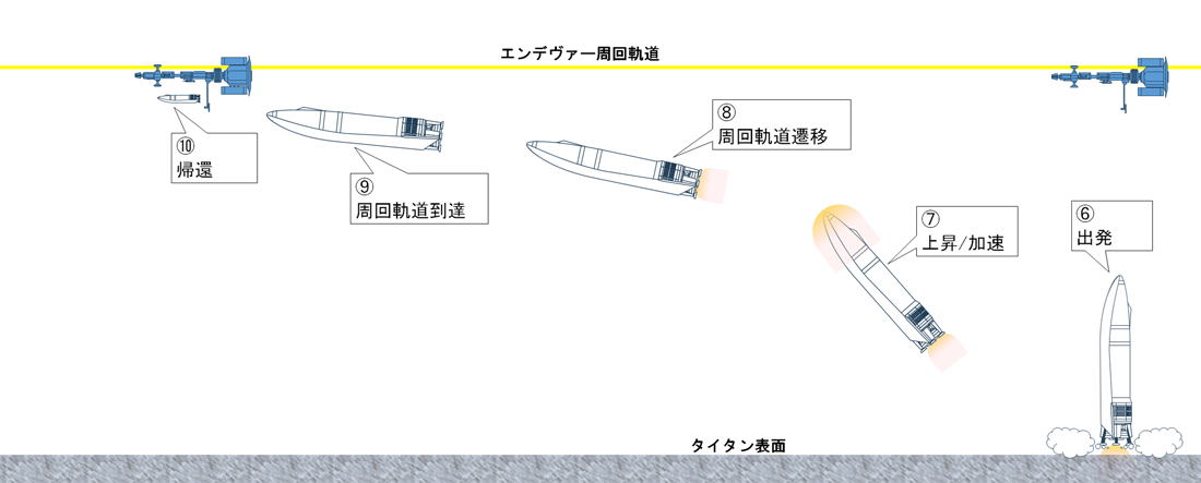 タイタンから「エンデヴァー」に帰還する時には、着陸船は推進システムを使用して「エンデヴァー」の待機している軌道まで上昇します。