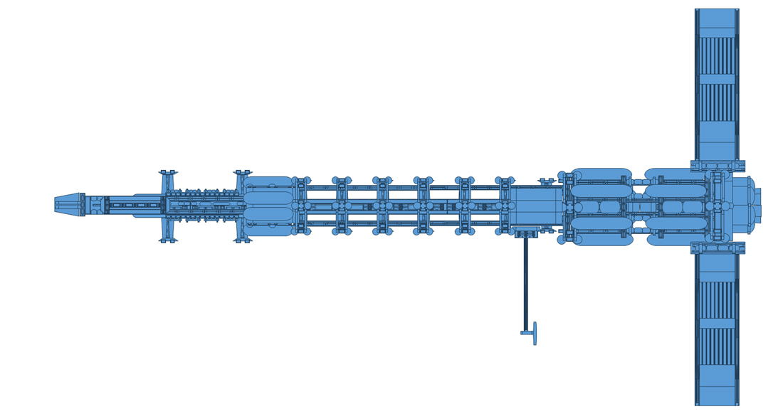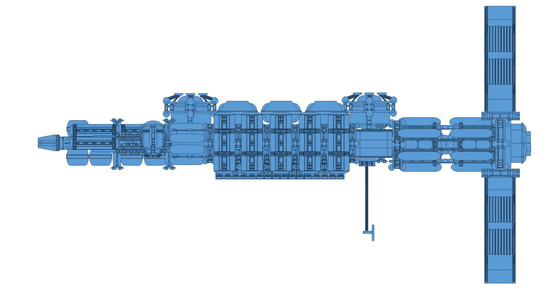 船体前部の指令/管理区画には旅客用の居住モジュールを接続し、船体中央部の貨物搭載用エリアにはコンテナや小型の宇宙船等を搭載します。