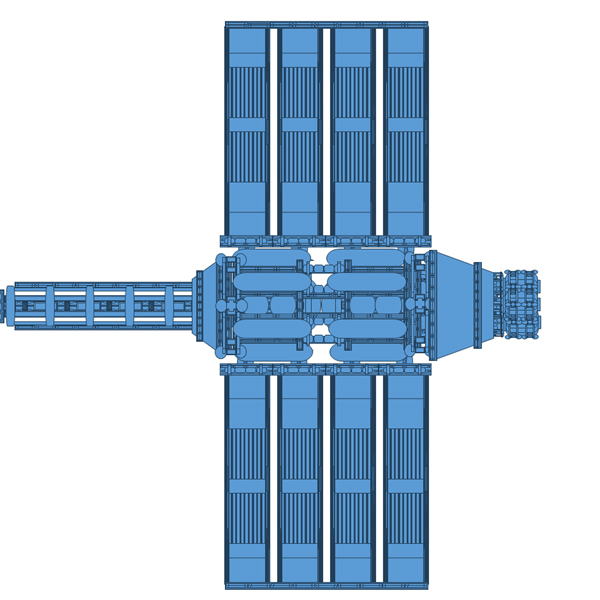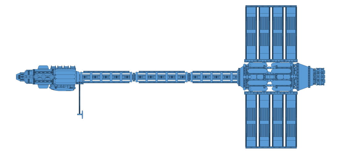 トラス構造の両端に居住区画および原子炉/推進システムが配置されています。