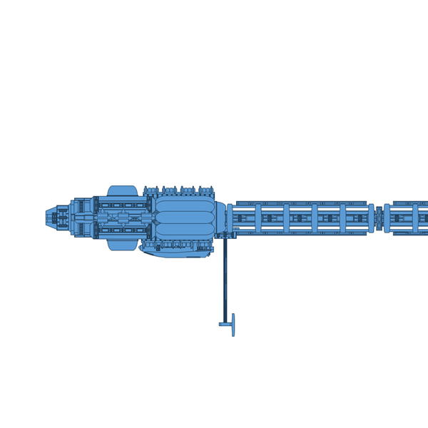 また、乗組員の安全性を目的として、原子炉と居住区画をできるだけ離す事になるため、船体中央部には長いトラス構造があり、
