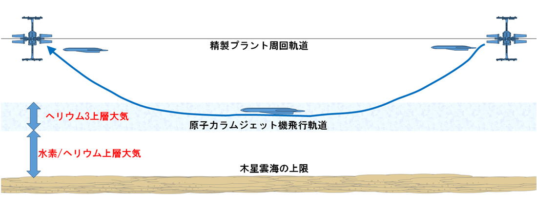 1.木星上層大気からのヘリウム3/水素の採取、精製プラントへの輸送