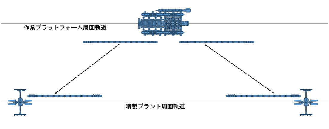 空になったカートリッジタンクは、地球周回軌道作業プラットフォームへと輸送され、再び木星へと運ばれます。