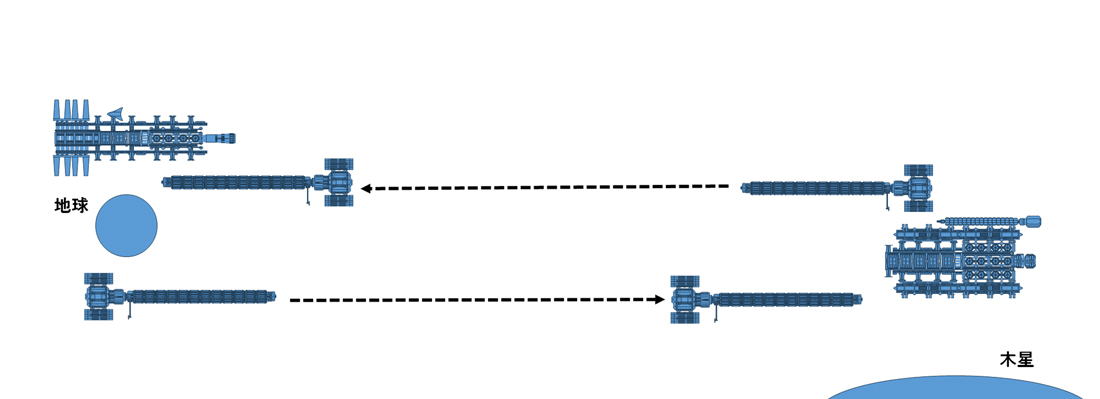| 段階3:輸送用タンカーによる、木星から消費地である地球への輸送 |