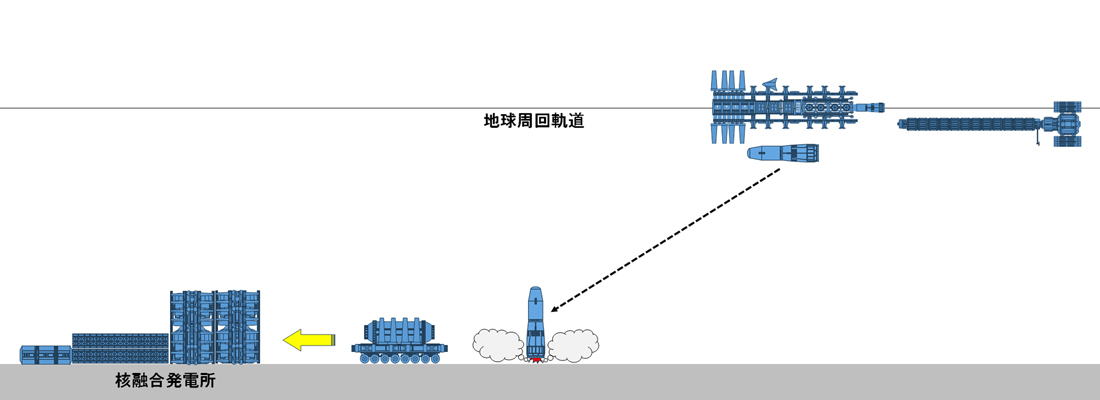 核融合燃料生産と、消費地までの輸送は以下の4つの段階を踏んで行われます。
