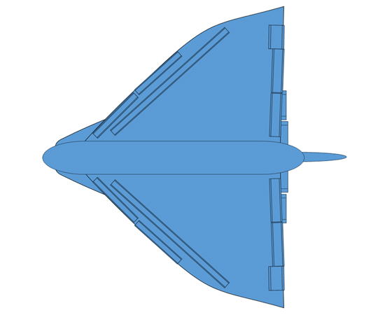 ●指令モジュール ・制御システム ・航行、管制、通信システム ●動力モジュール ・原子炉 ・熱交換器 ●推進モジュール ・原子力ラムジェット推進システム(4基) ・推進剤タンク(大気圏外用) ・耐熱パネル ●大気採取・保管モジュール ・気体圧縮用小型コンプレッサー ・冷却システム ・高圧貯蔵タンク ●胴体一体型翼 ・複合材骨組み、ハニカム構造パネル ・耐熱パネル |