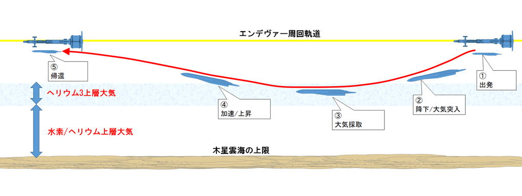 「エンデヴァー」から降下した原子力ラムジェット機は、木星上層大気中を飛行して大気のサンプルを採取、