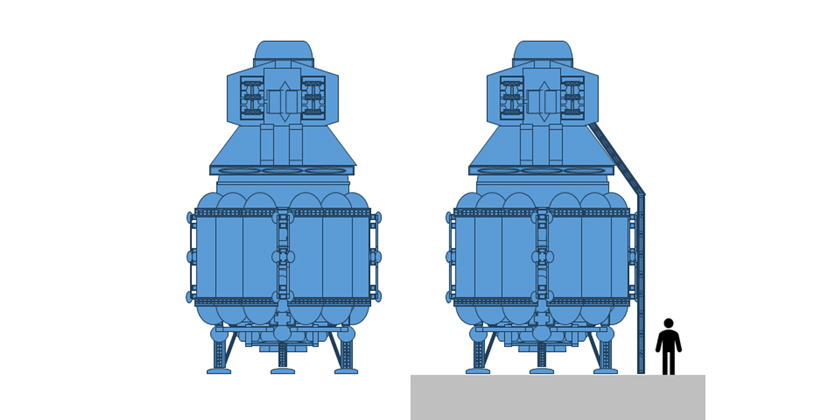 | 全体のイメージ図(右は着陸時の状態、右側に人間の図を大きさ比較の為に表示) |