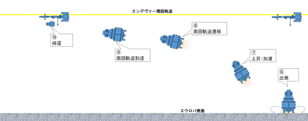 エウロパの表面から「エンデヴァー」に帰還する場合には、着陸船は推進システムを使用して「エンデヴァー」の待機している軌道まで上昇します。