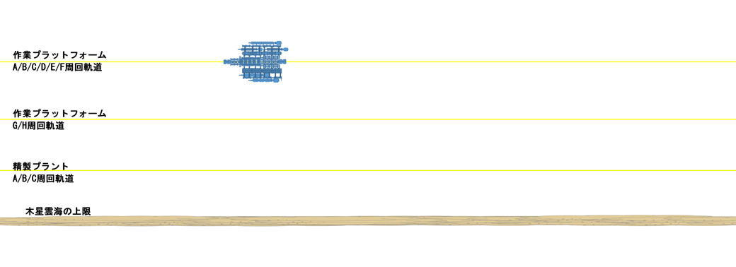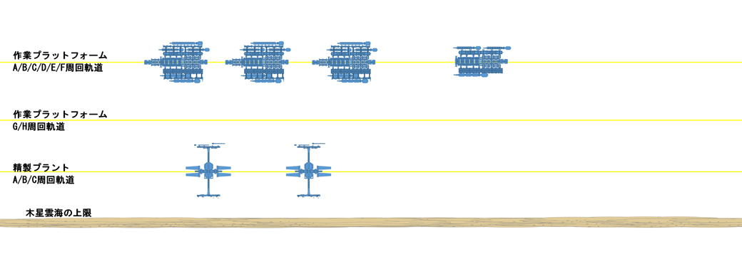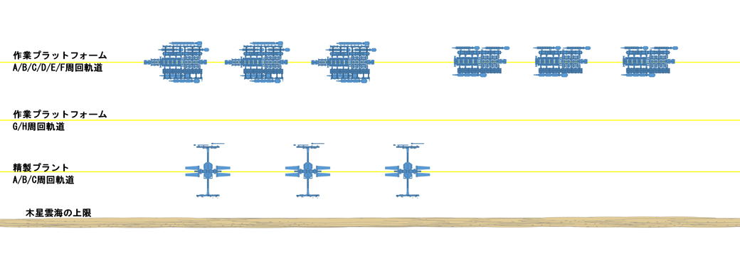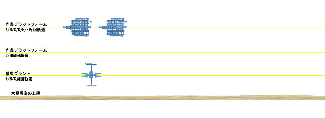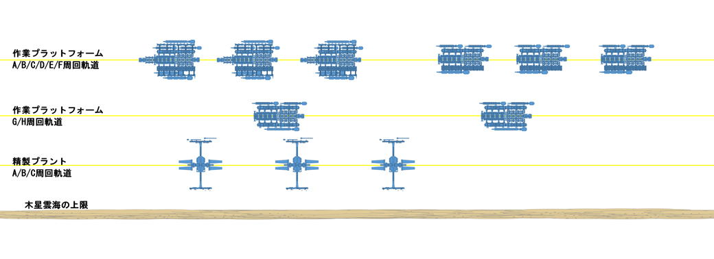 作業プラットフォーム、精製プラントの木星周回軌道上の位置については「木星資源開発拠点の配置概要」もあわせて参照してください。