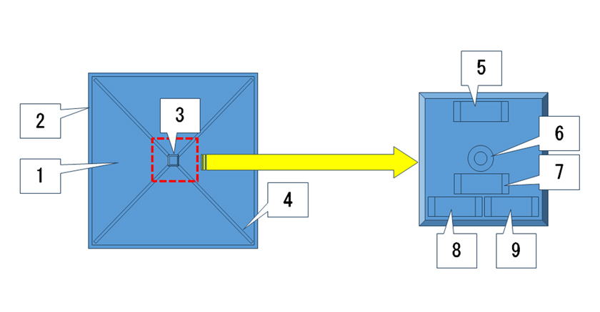 5.電源ユニット 6.高感度カメラ 7.制御ユニット 8.通信ユニット 9.大容量記憶装置 |