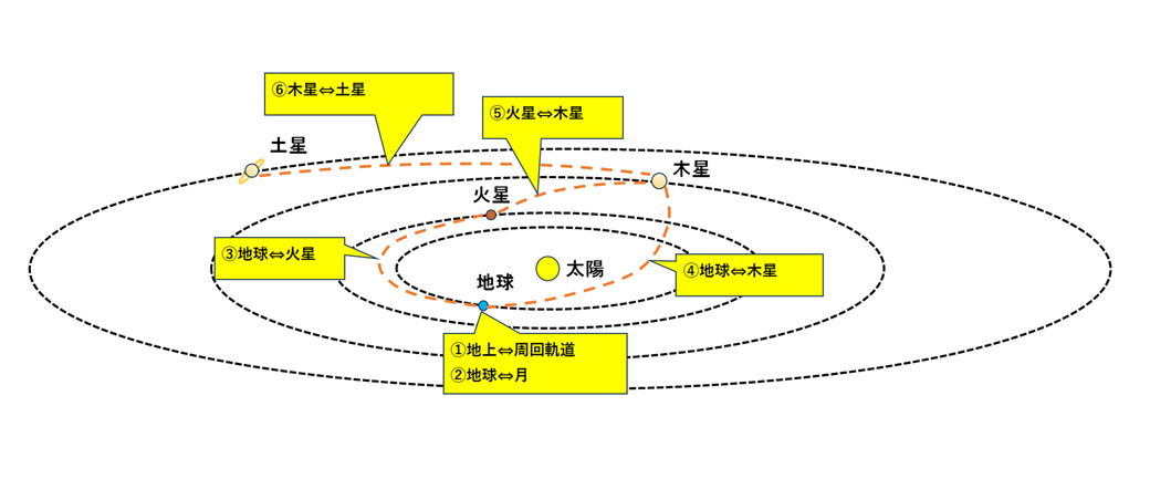 今までに説明した太陽系内の交通インフラについて、体系化して以下にまとめました。