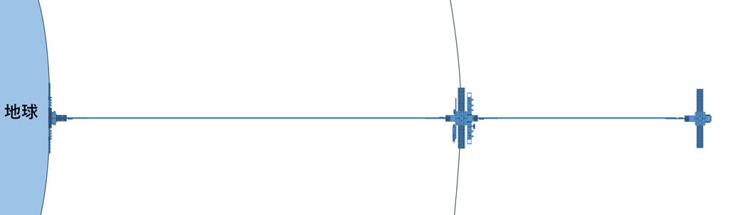宇宙空間側の構造物は、静止軌道上とさらに上空の2つの構造物で構成されています。