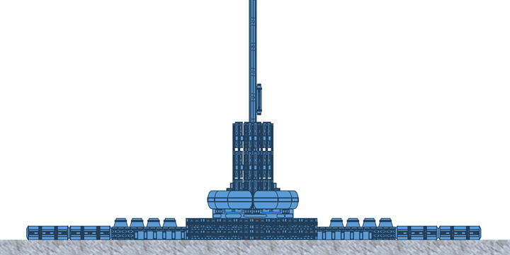 <静止軌道上拠点> ●港湾設備 ・旅客用ターミナル ・貨物用ターミナル ・エレベーター待機線/メンテナンス施設 ●旅客設備 ・宿泊設備 ・レジャー設備 ・宇宙船接岸施設 ●管理用設備 ・中央制御室 ・電力回収/貯蔵システム ・非常用救助システム ・カウンターウェイト |